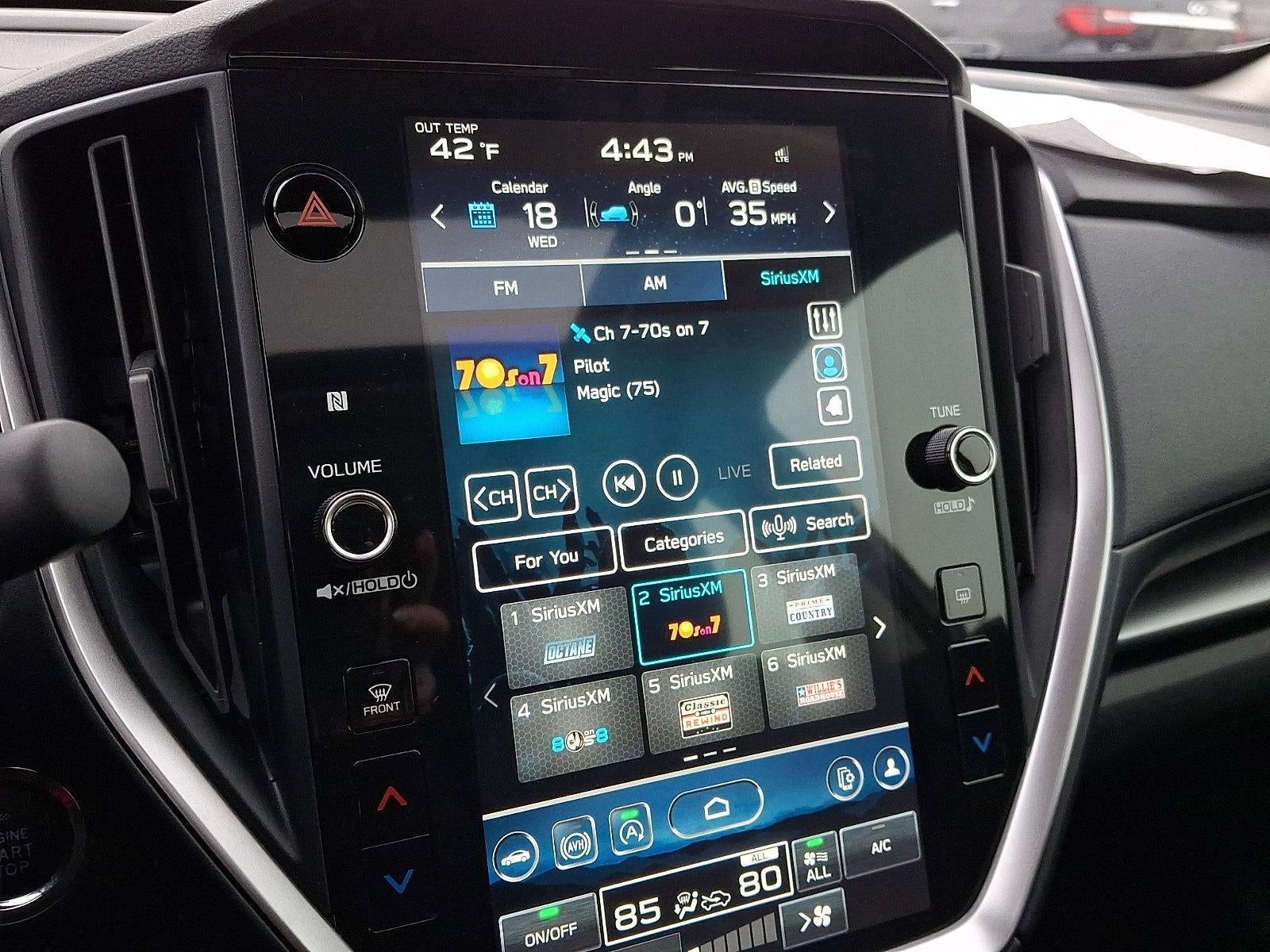 - Radio: Subaru STARLINK 11.6" Multimedia Plus Sys -inc: valet mode, AM/FM stereo, HD Radio, multi-touch gesture high resolution display screen, voice activated controls, Bluetooth® audio streaming and hands-free phone connectivity, Bluetooth® hands-free SMS text messaging connectivity, iPod control capability, rear-vision camera display, SiriusXM All Access radio (4 months free trial/subscription required after), SiriusXM Travel Link (4 months free trial/subscription required after), smartphone integration: Android Auto, Apple CarPlay, STARLINK cloud applications, 6 speakers, 3.5mm auxiliary input jack, illuminated/dual USB A and C input charge ports, roof mounted antenna and audio/satellite connected services